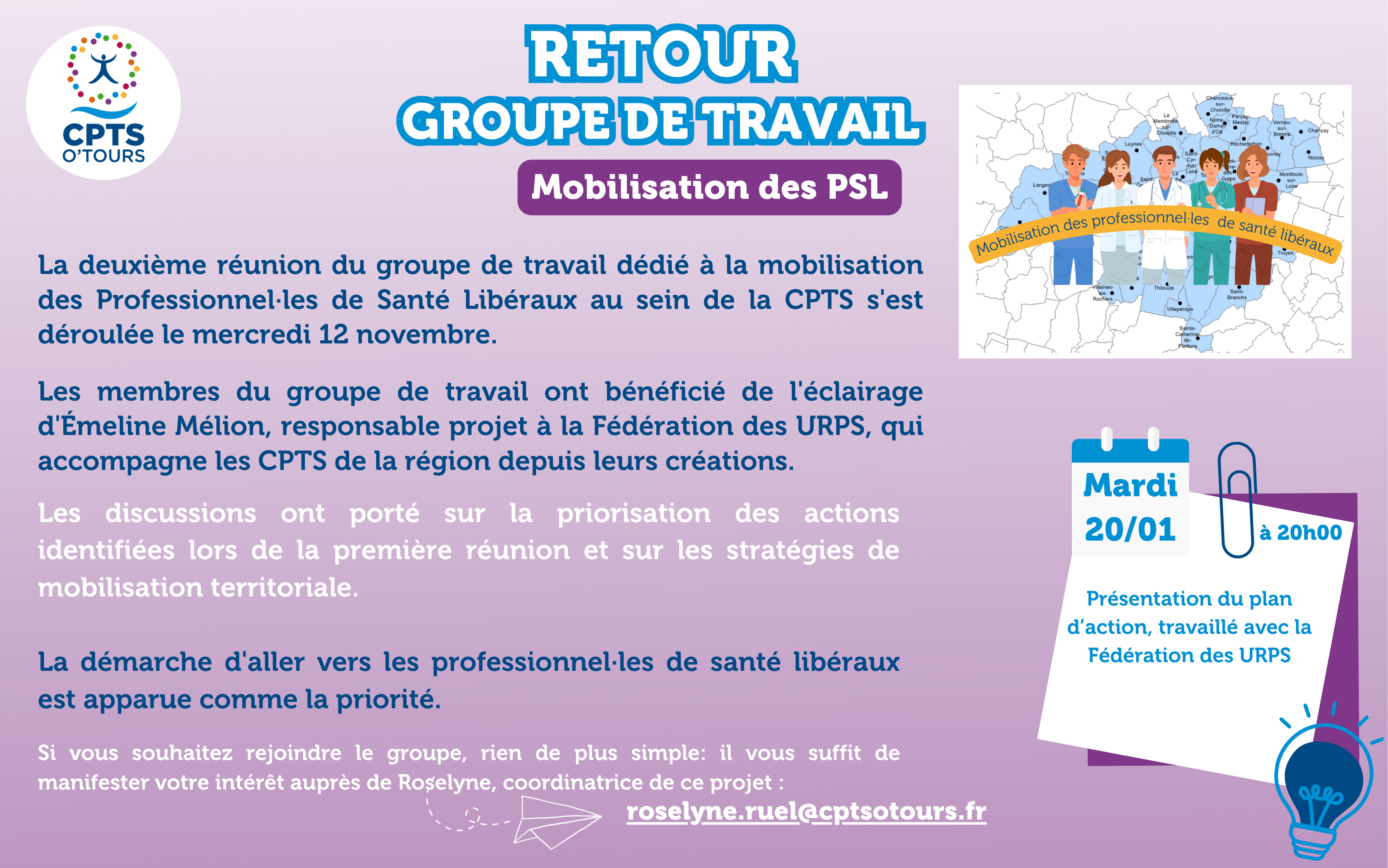 Retour Groupe de travail – Mobilisation des PSL par Secretaire de direction | Nov 19, 2025 | Actus CPTS PROFESSIONS DE SANTE, Evenements, Mobilisation des PS | 0 commentaires