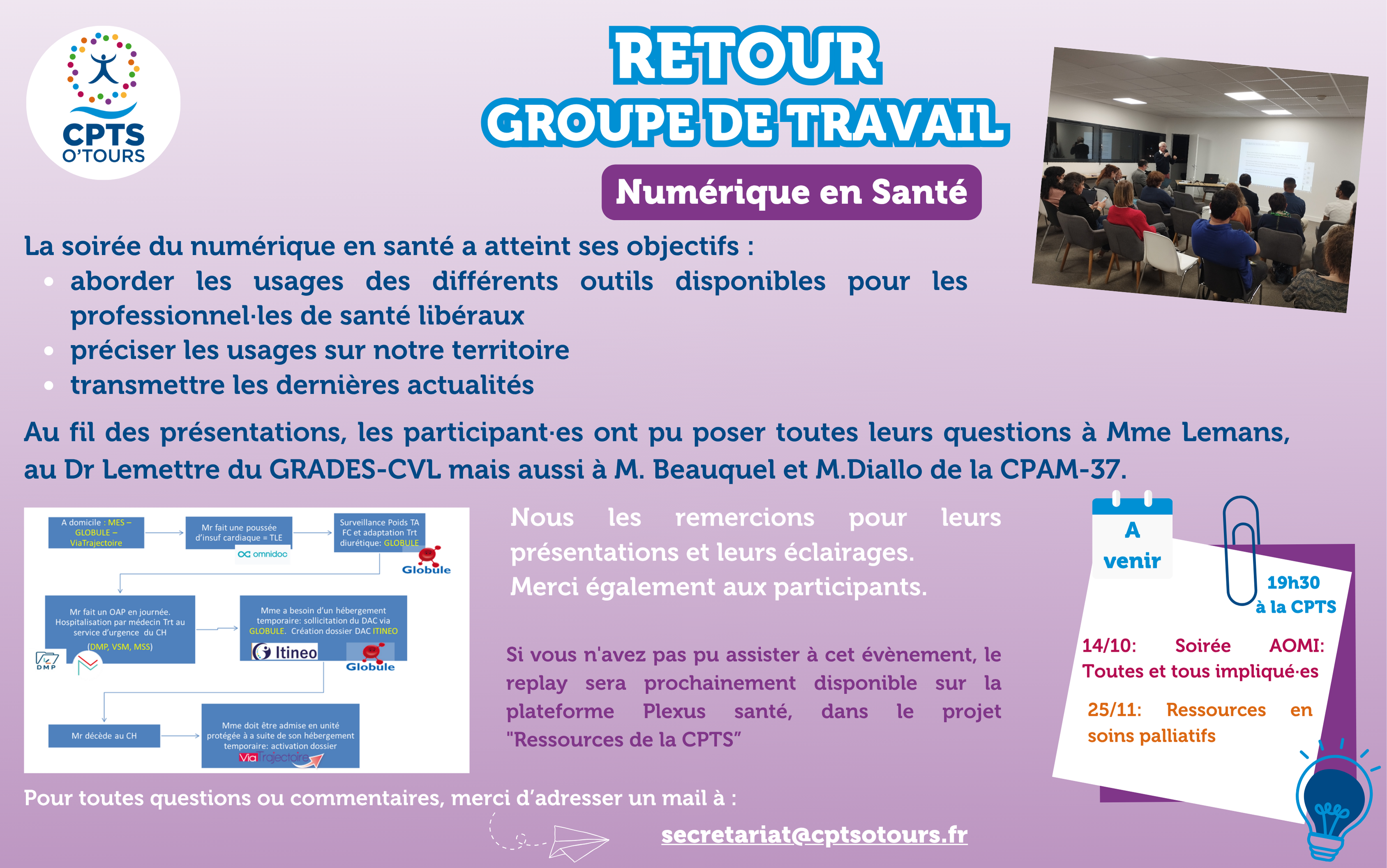 Retour Groupe de Travail – Numérique en Santé par Secretaire de direction | Oct 3, 2025 | Actus CPTS PROFESSIONS DE SANTE, Evenements | 0 commentaires