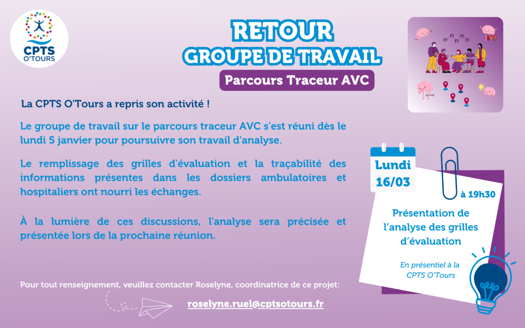 Retour Groupe de travail – Parcours Traceur AVC par Secretaire de direction | Jan 8, 2026 | Actus CPTS PROFESSIONS DE SANTE, Evenements, Mobilisation des PS | 0 commentaires